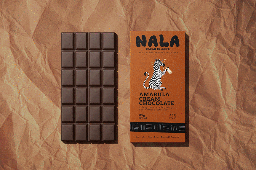 A playful, clean visual identity for NALA that blends bold stripes, warm humor, and a signature zebra to energize their chocolate brand.