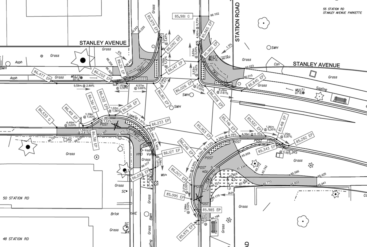 Transportation Services has requested this project to permanently implement intersection safety improvements at Stanley Street and Station Road. Previously, temporary curb extensions were installed using pavement markings and flexible bollards as part of a temporary TSLIP (Traffic Safety Local Improvement Program) initiative. Given the positive impact of the temporary measures on traffic calming and pedestrian safety, Transportation Services has requested the design and construction of permanent curb extensions to formalize the improvements.