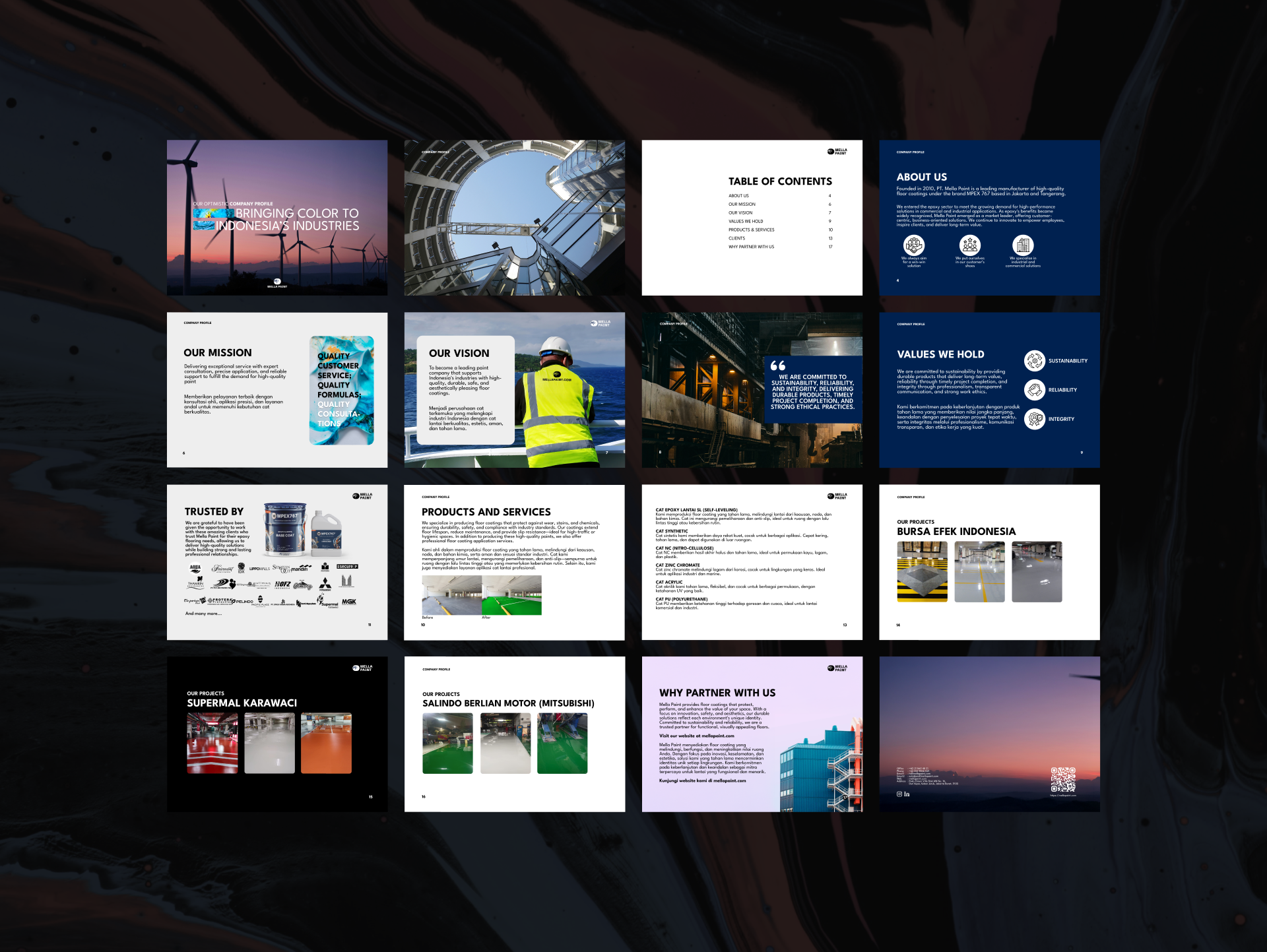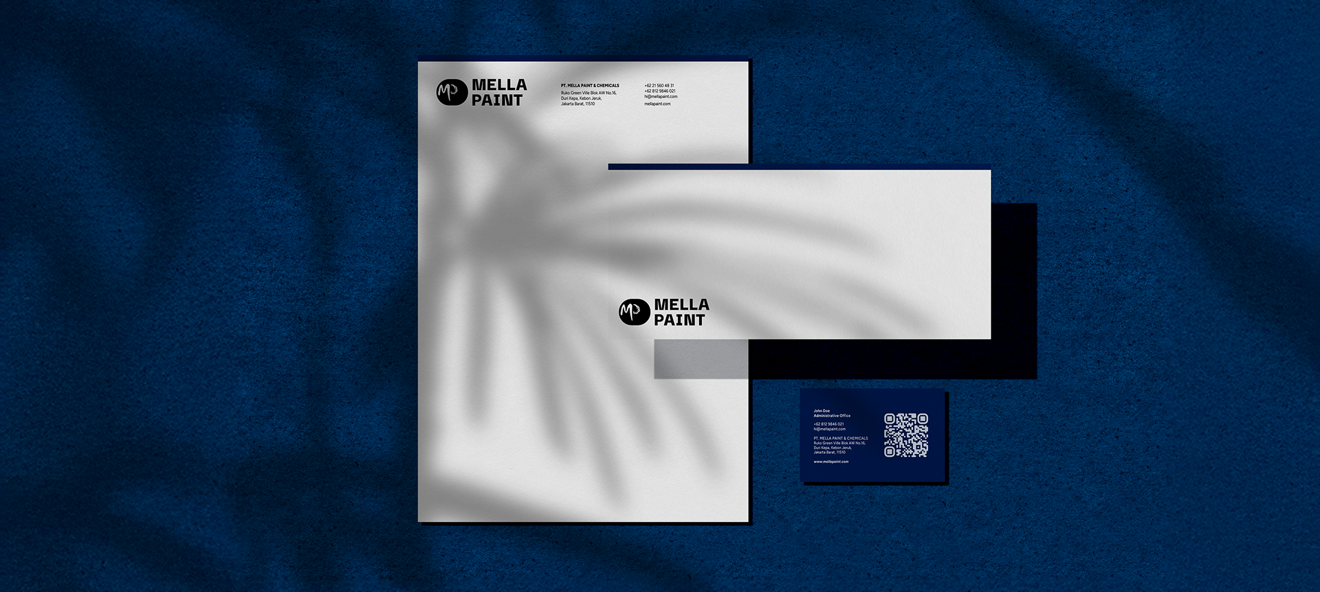 The 2025 logo is built for versatility, ensuring a seamless presence across print, product packaging, digital platforms, and advertising. The rounded square background provides a structured, adaptable shape, while the bold dark blue enhances visibility in both large and small formats. Whether on a paint can, a website, or a billboard, the refined design maintains its clarity and impact, reinforcing Mella Paint’s commitment to a strong, consistent brand identity everywhere it appears.